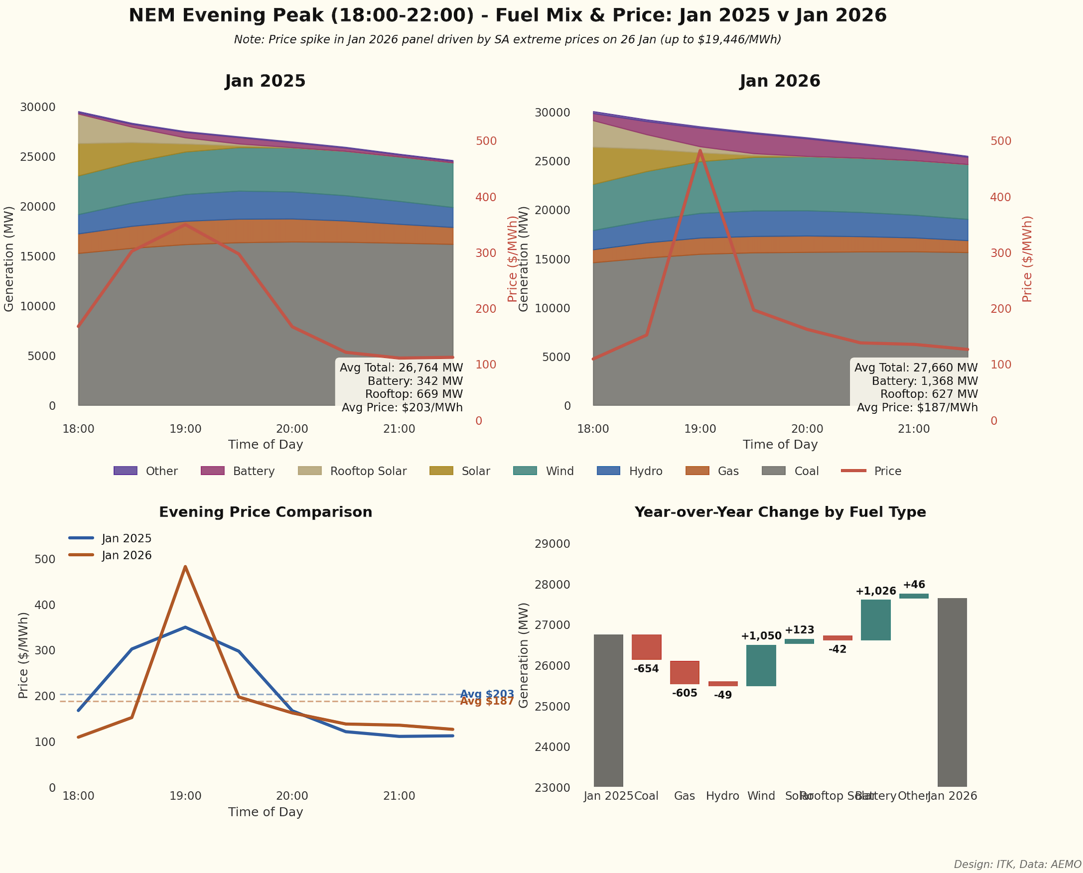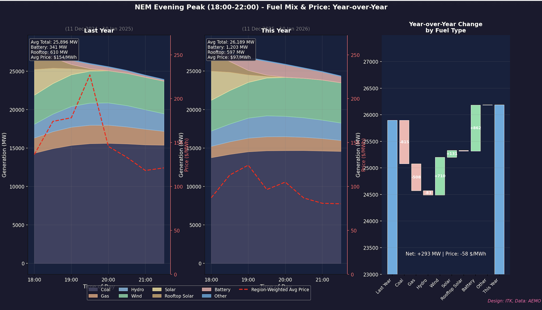 Just updated peak pricing comparison of this year and next year. Demand is up about 3% this January, prices were nevertheless well down until demand in South Australia pushed them up to the peak. Even so average prices were still below last January and the plots show the increasing impact of batteries very clearly