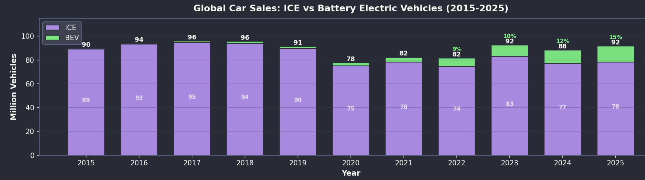 Look how ICE cars have fallen from peak, not just due to EVs to be sure but certainly a factor. Look in Articles for a discussion.