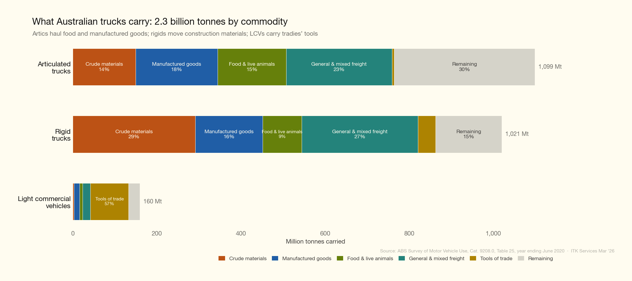 | Average km/year | ~30,000 | ABS SMVU 2020 (heavy rigid estimate) |